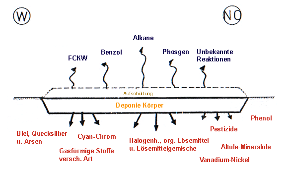 Die ca. dreissig Zentimeter starke Basisabdichtung der Deponie ist vollkommen unzureichend und mit sehr hoher Wahrscheinlichkeit stark beschädigt. Nach der derzeit gültigen Rechtslage wären bei neu zu errichtenden Deponien natürliche und künstliche Basisbarrieren von vier Metern Mächtigkeit vorgesehen! Mit hoher Wahrscheinlichkeit sind auch die Dichtungen der Deponieflanken teilweise nicht mehr intakt. Es kann mit einiger Sicherheit davon ausgegangen werden, dass auch sie bei der Verfüllung beschädigt wurden.
