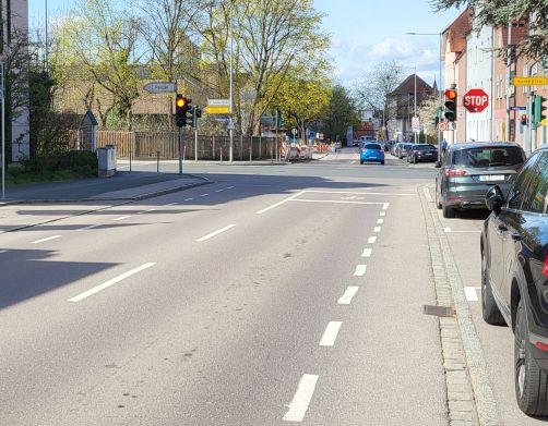 Am Ortsausgang von Schwabach in Richtung Penzendorf verläuft der Radweg auf der nördlichen Straßenseite was eine Querung der Straße für stadtauswärts fahrende RadfahrerInnen erfordert. Beim Neubau der Brücke wurde eine Querungshilfe eingebaut, die Radfahrer mangels Übersicht zum Absteigen zwingt.